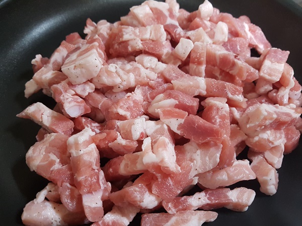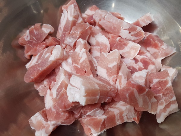 1. 돼지고기 삼겹살을 먹기 좋은 크기로 잘라줍니다.