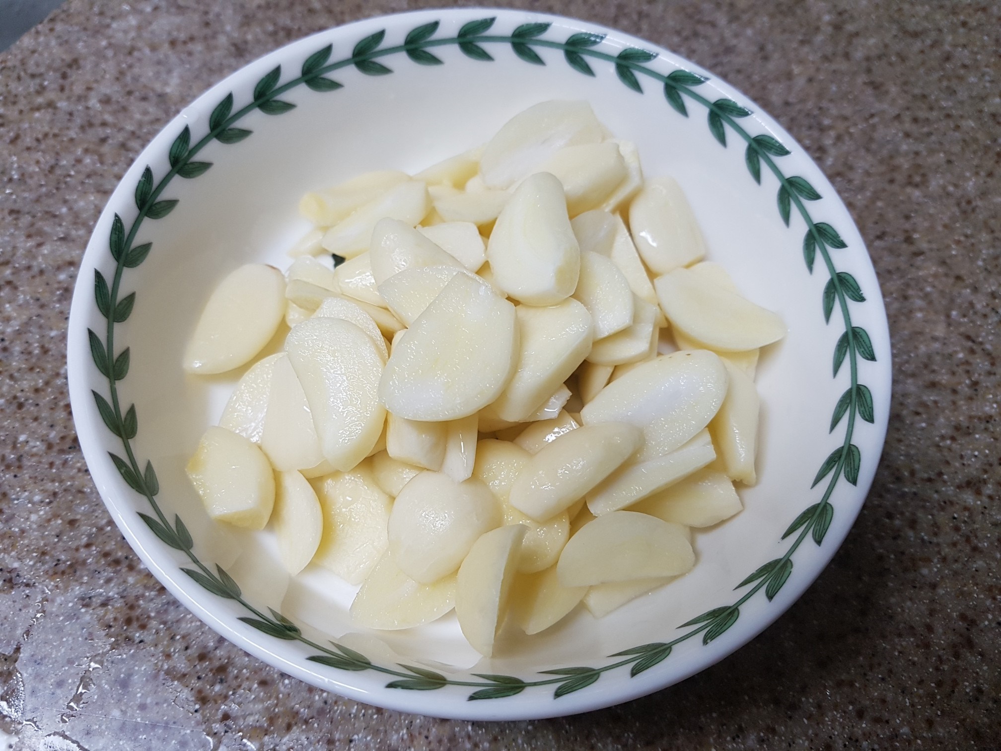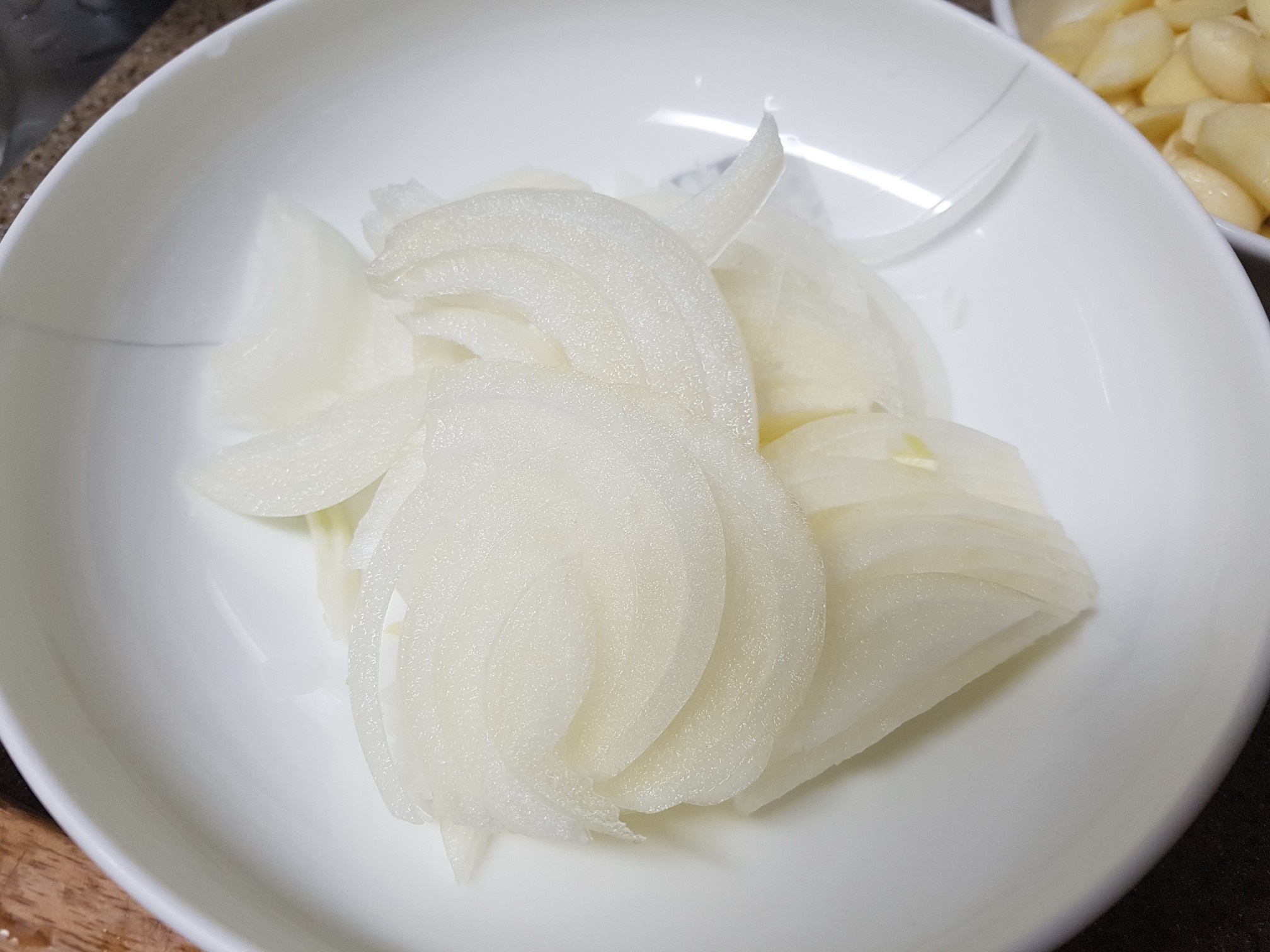 3. 마늘은 편썰기를 해주고 양파는 채를 썰어줍니다.