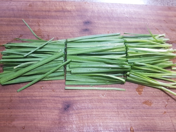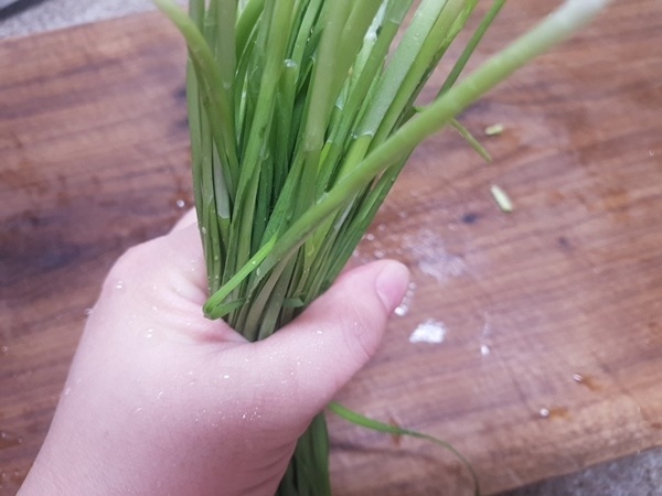 1. 부추는 엄지와 검지로 잡을 수 있는 양을 준비합니다.