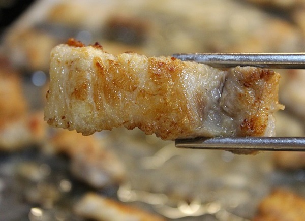 8. 삼겹살을 구울 때 자주 뒤집어주지 않고 한쪽면이 다 익고나면 뒤집어주시면 됩니다.
