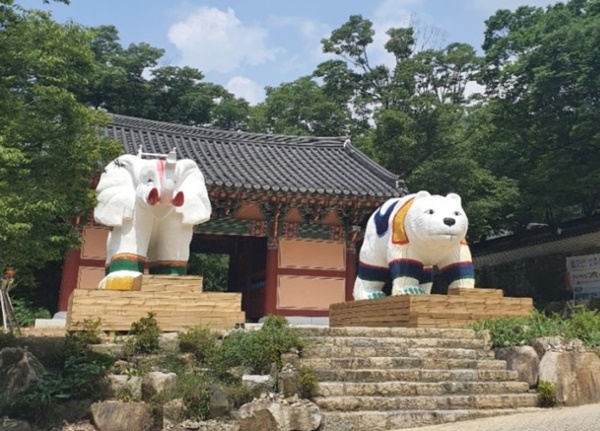 창원시 서쪽에 높이 솟은 불모산에 성주사 절이 있습니다. 성주사는 임진왜란 때 전소된 뒤 1604년 진경이 중건했는데 이 때 곰이 재건하는 것을 도왔다고 하여 웅신사 또는 곰절이라는 별칭이 생겼다. 그래서 지금 성주사에 곰 모형이 입구에 서 있는 것이 귀엽습니다.