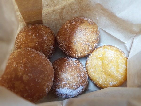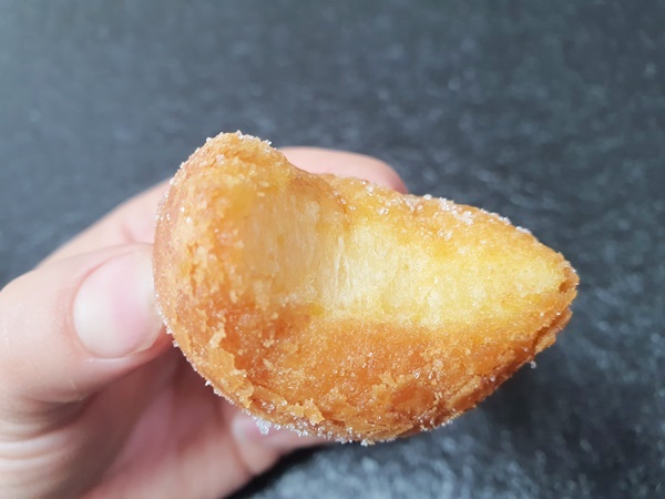 쫄깃한 찹쌀도넛을 사왔습니다. 시장에 가면 여지없이 팔고 있는 찹쌀도넛 너무 기대하며 먹었는데 팥앙금이 없더라구요. 추천하고 싶은 메뉴였는데 팥앙금이 없어 아쉬워서 패쓰했습니다. 하지만 쫀득하고 설탕이 발려있어 먹었는데 이가 약한 아이는 너무 질기다는 평을 내놓았습니다.