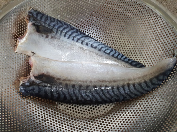 1. 고등어를 씻어 손질한 후 반토막을 내어 물기를 빼줍니다.
