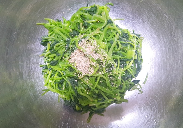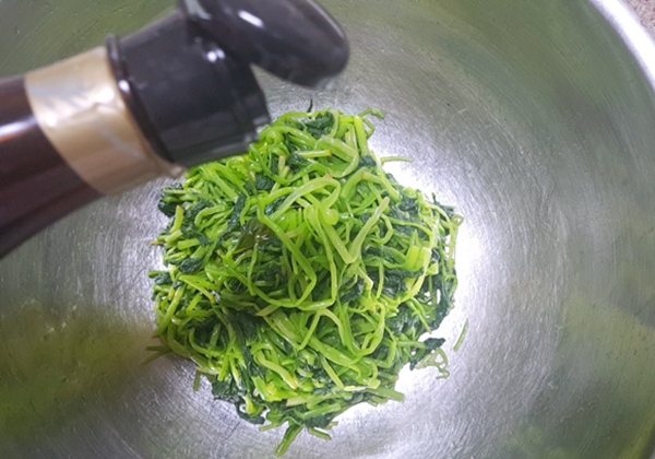 나물을 무칠 때 너무 힘을 주면 금방 숨이 죽기 때문에 맛이 없답니다. 살짝 양념이 베이도록 무쳐주세요.