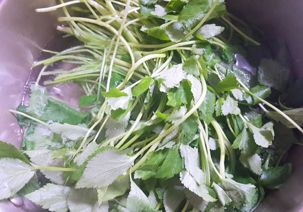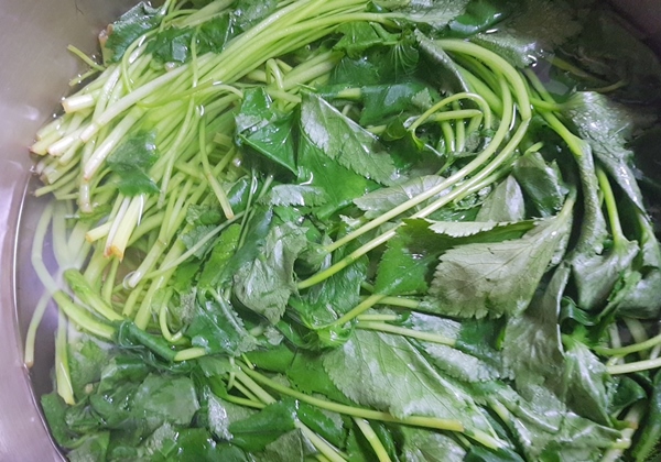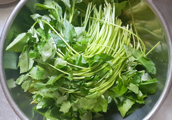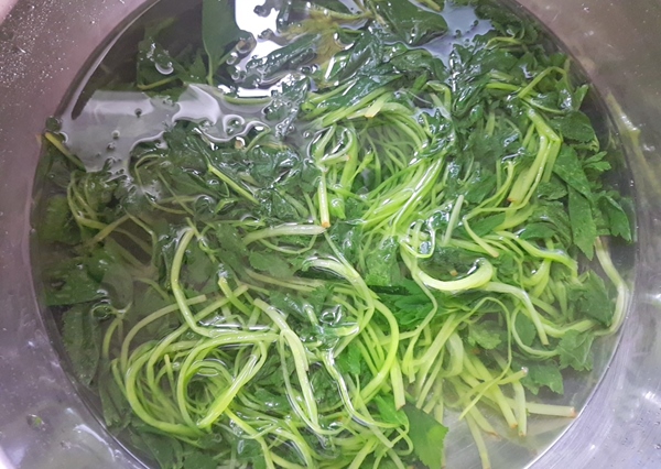 1. 참나물을 물에 깨끗이 씻어줍니다.