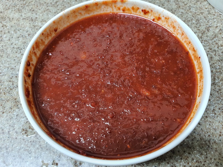 양념 : 고추가루 2T, 고추장 1T, 식초 3T, 다진 마늘 1T, 연겨자 1.5T, 매실청 1T, 올리고당 1T, 설탕 1T