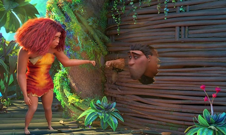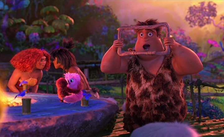 여기는 잘난 사람들의 집입니다. 그토록 염원하던 완벽한 집 트리하우스였습니다. 트리하우스는 현대식 아파트와 다름없었습니다. 동굴속에서만 살던 크루즈 패밀리는 방이 무엇인지도 모르고 그냥 벽을 뚫고 지나다니며 구멍을 내고 크루즈의 아들 덩크는 창문을 보고 반해버립니다. 네모 모양의 창밖을 하루종일 보고 있죠. 십대들이 TV를 보는 것처럼요.