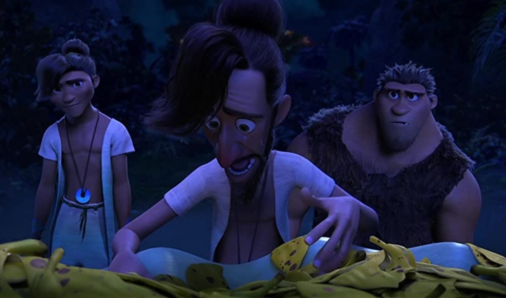 먹거리를 보고 정신없이 달려들어 마구마구 해치워버리는 동굴인간 크루즈 패밀리. 하지만 가이는 줄 세워져 있는 과일들과 채소들이 이상하다고 생각하는데 곧 덫에 걸리고 맙니다. 멀리서 방패와 창을 들고 슬리퍼를 신고 우아하게 등장하는 베터맨 패밀리.