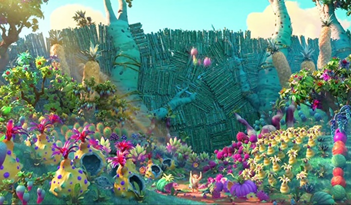 그러다 아빠 그루그가 이상한 벽을 발견합니다. 구멍 사이사이로 태양 빛이 스며드는 곳. 가족들은 세상의 끝이라 여기고 되돌아갈려는 찰나 아빠는 그 벽을 부셔서 들어가봅니다.