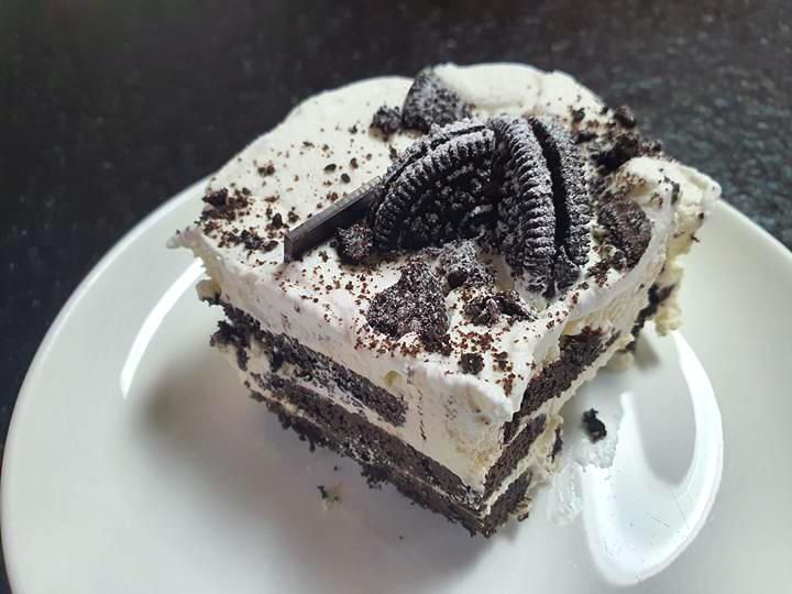 초코맛의 두 층의 케잌시트 사이로 산뜻한 생크림과 마스카포네크림이 발라져 있어 너무 가볍지 않게 달콤한 맛을 느낄 수 있습니다. 오레오 쿠키를 반으로 쪼개어 올려놓았고 크림 위엔 쿠키 조각들을 뿌려놓았습니다. 부드러운 생크림과 고소한 오레오 쿠키 조각들을 함께 먹었더니 정말 커피 한 잔이 땡겼습니다.