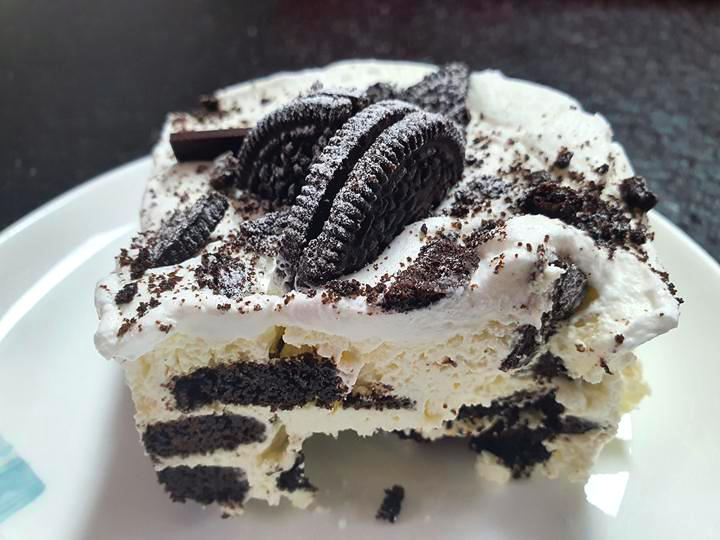 아이스박스 한 조각을 나이프로 잘라 접시에 놓아서 떠 먹어봤는데 쿠키앤크림의 향이 진하게 올라왔고 생크림이 너무너무 맛있었습니다. 달콤하지만 느끼하지 않고 냉장고에 뒀더니 시원했습니다. 쿠키 앤 크림 맛이라서 그런지 많이 달달할 것만 같아서 아이들에게 안 먹겠다고 했는 것을 후회했습니다.
