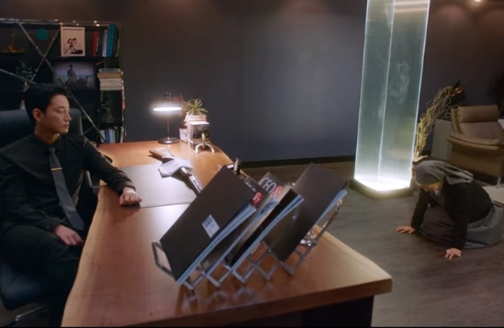 벙커에서 한 회장은 한지용의 악행에 자신의 책임을 느꼈던지 아버지로서 모든 것을 용서하고 받아들이려고 합니다. 한지용의 브레이크 없는 악행을 여기서 멈추게 하기 위해서였죠. 한 회장은 다 내려놓고 새로 시작하라고 하지만 한지용은 단번에 거절합니다.