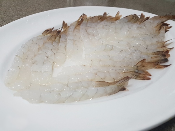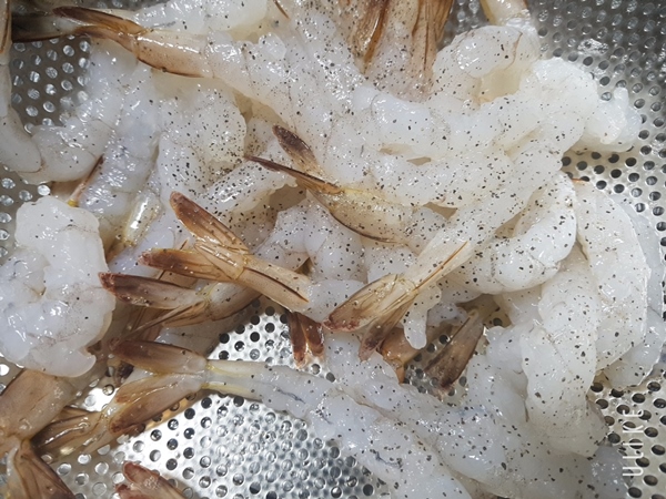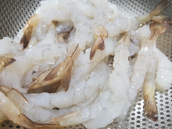 2. 새우를 흐르는 물에 깨끗이 씻고 물기를 빼줍니다.