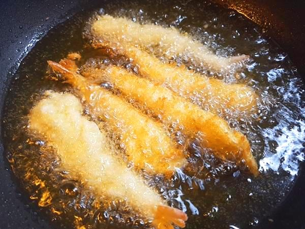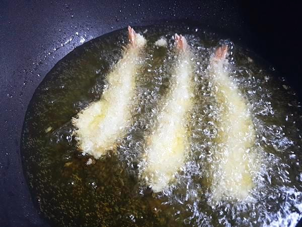 11. 새우튀김이 노릇노릇할 때까지 돌려가며 튀겨줍니다.