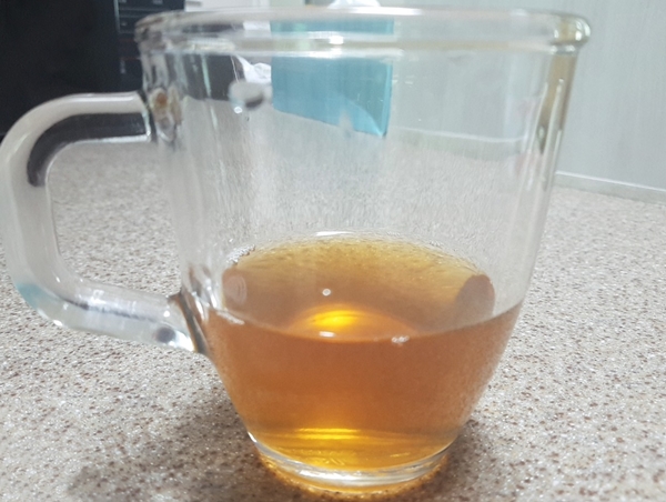 푸드버킷 유기농 양배추즙을 컵에 따라보았더니 맑은 보리차 색깔이고 양은 100ml 인데 컵의 1/3 정도 되었습니다. 따뜻하게 드셔도 되지만 저는 여름이라 그런지 냉장고에 두어 차갑게 해서 시원하게 마시면 갈증해소도 되어서 여름용 냉차로도 잘 이용하고 있습니다.
