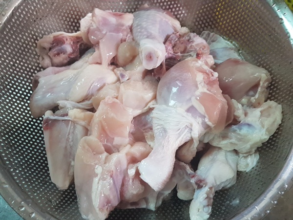 1. 닭을 흐르는 물에 깨끗이 씻어줍니다.