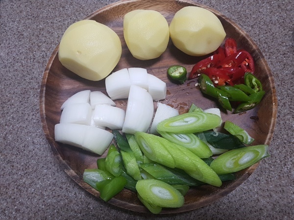 ※ 감자, 당근, 양파는 굵게 성큼성큼 썰어주고, 대파는 어슷썰기를 해줍니다.