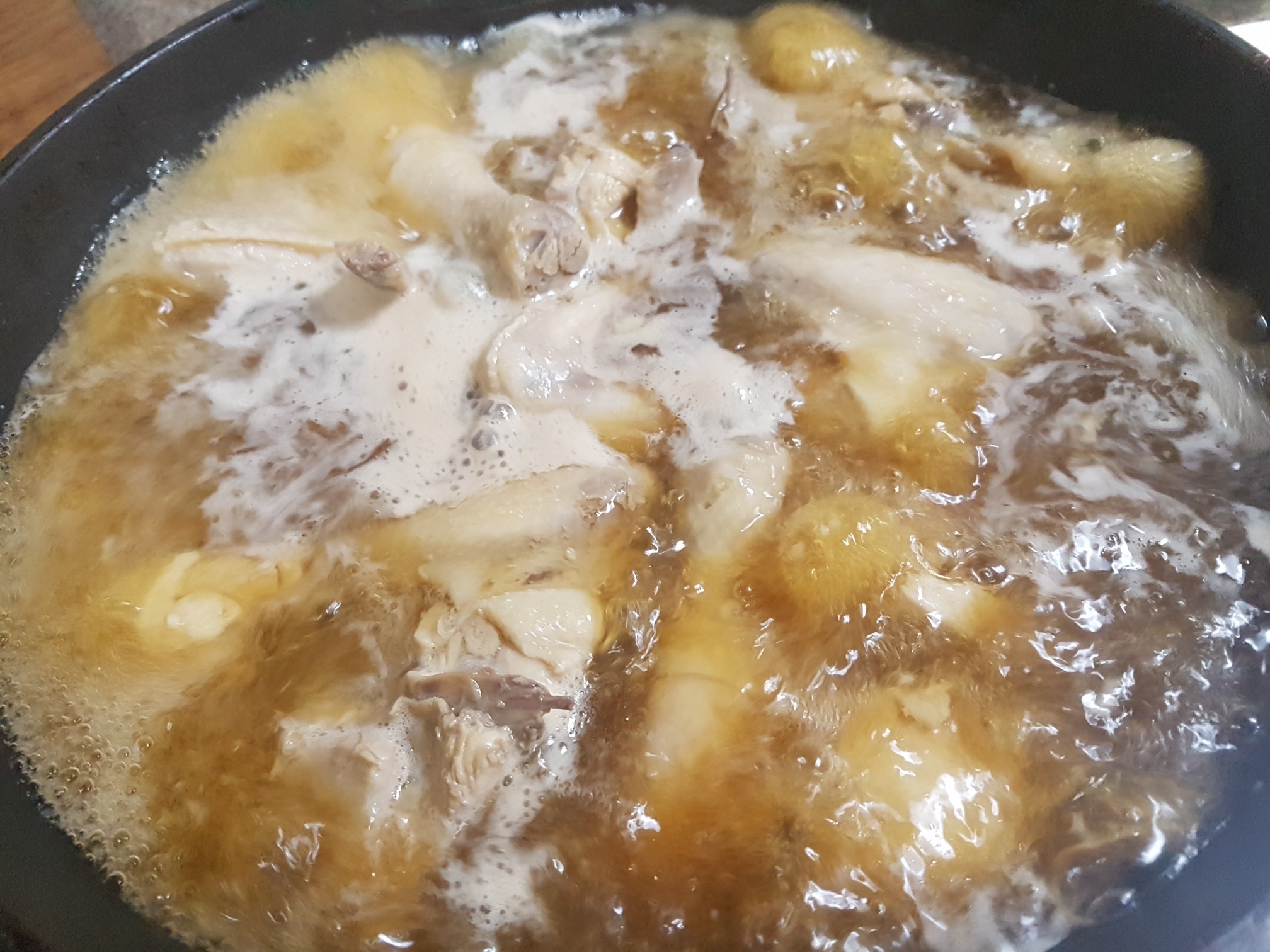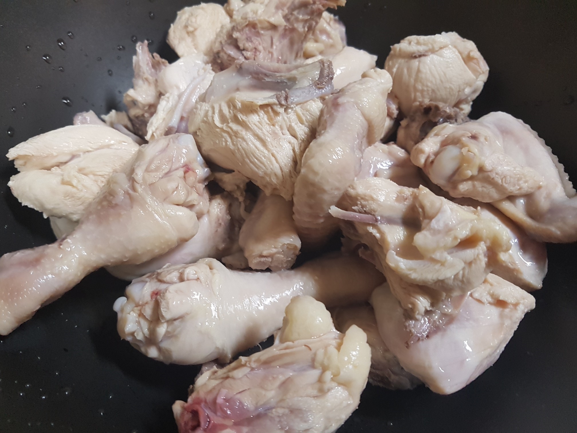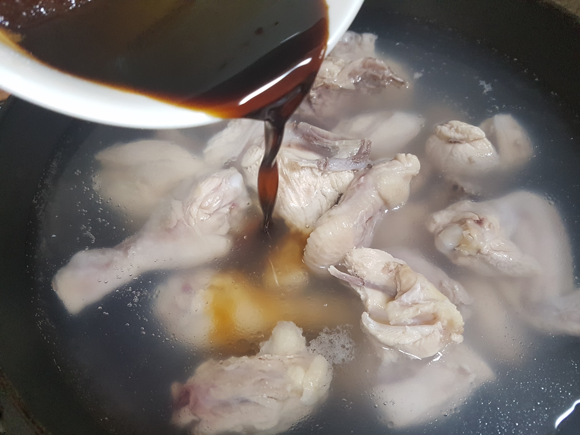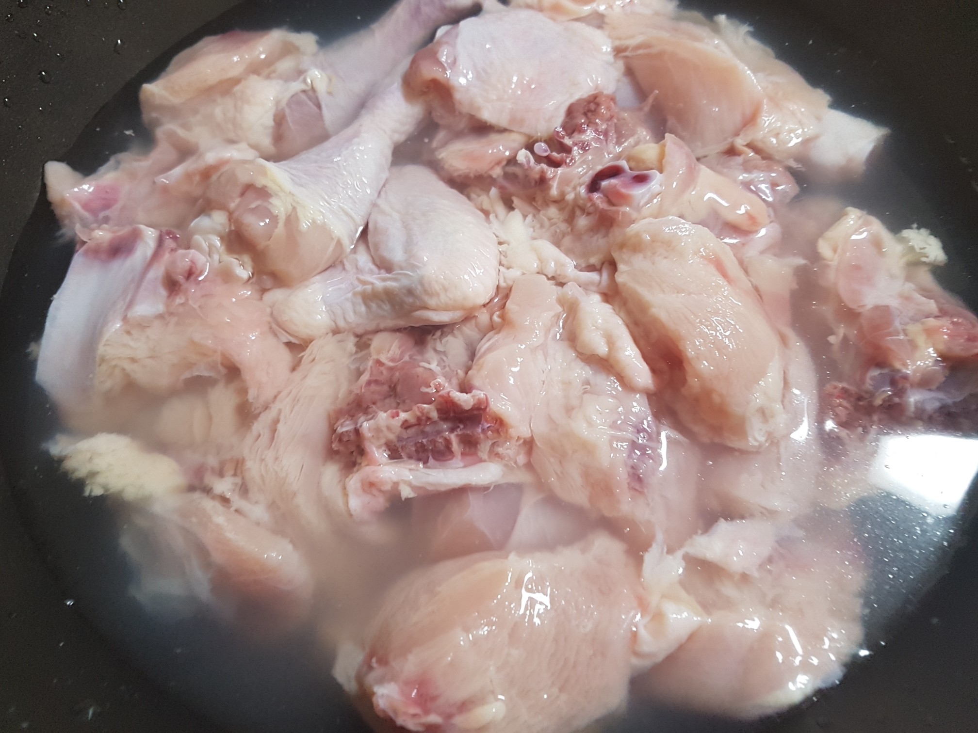 3. 닭고기를 깨끗이 씻어 냄비에 담습니다.