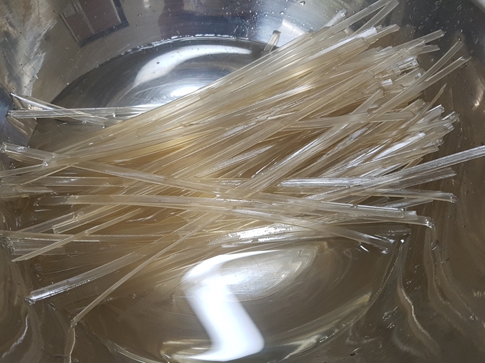 1. 당면을 물에 담궈 불려줍니다.