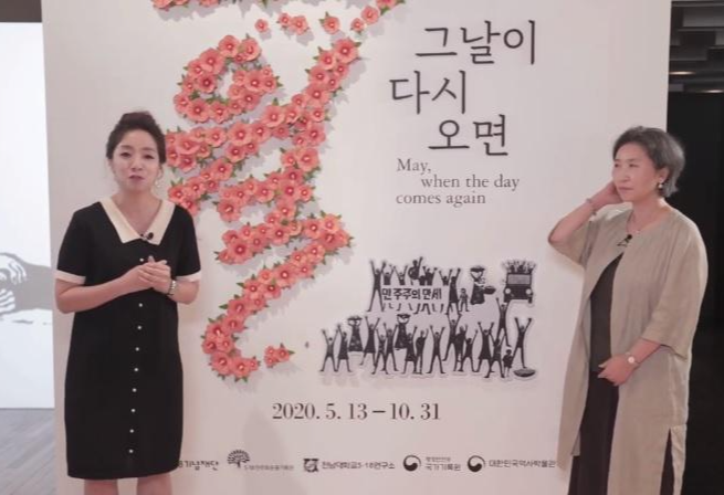「오월, 그날이 다시 오면」은 5·18 광주 민주화 운동 40주년을 맞이하여 마련된 특별전입니다. 1980년대 많이 불려졌던 오월의 노래의 후렴부분에서 따온 제목이라고 합니다. 이 특별전은 5·18 민주화 운동에 대해 우리 국민들이 다시 생각할 수 있는 기회가 되면 좋겠다는 의미로 기획되었습니다.