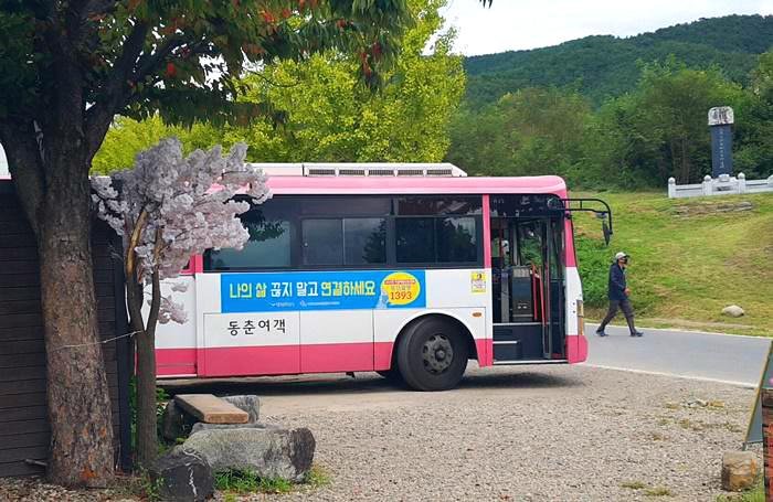 하회장터를 나오자 바로 소독하고 장부에 명단을 작성하고 매표소에서 표를 사서 안동하회마을로 들어가는 셔틀버스를 탔습니다. 일반버스처럼 생겼는데 안동하회마을과 주차장을 도는 셔틀버스라고 하네요. 버스기사님은 친절하셔서 모르는 거 잘 설명해주시더라구요.