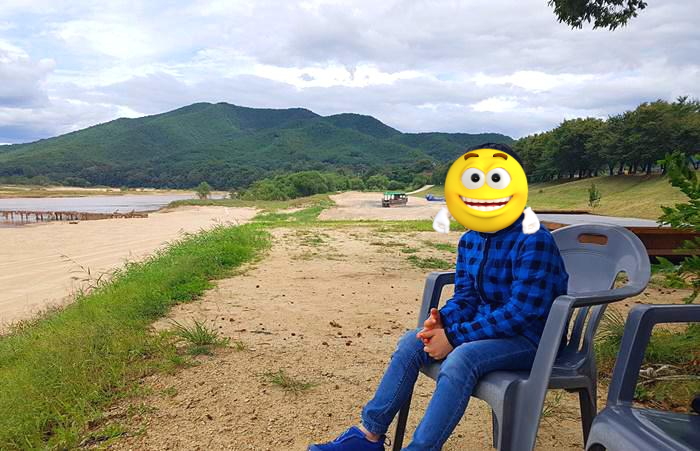 코로나 이전에는 가을되면 부용대 축제가 열리곤 했었는데 지금은 구경하기 힘들겠지요. 벚꽃길이 끝날 쯤 만송정이 보이는데 강변 아래 만송정 밤나무 아래에 놓인 간이 의자에 앉아 아이와 함께 부용대를 감상했습니다.